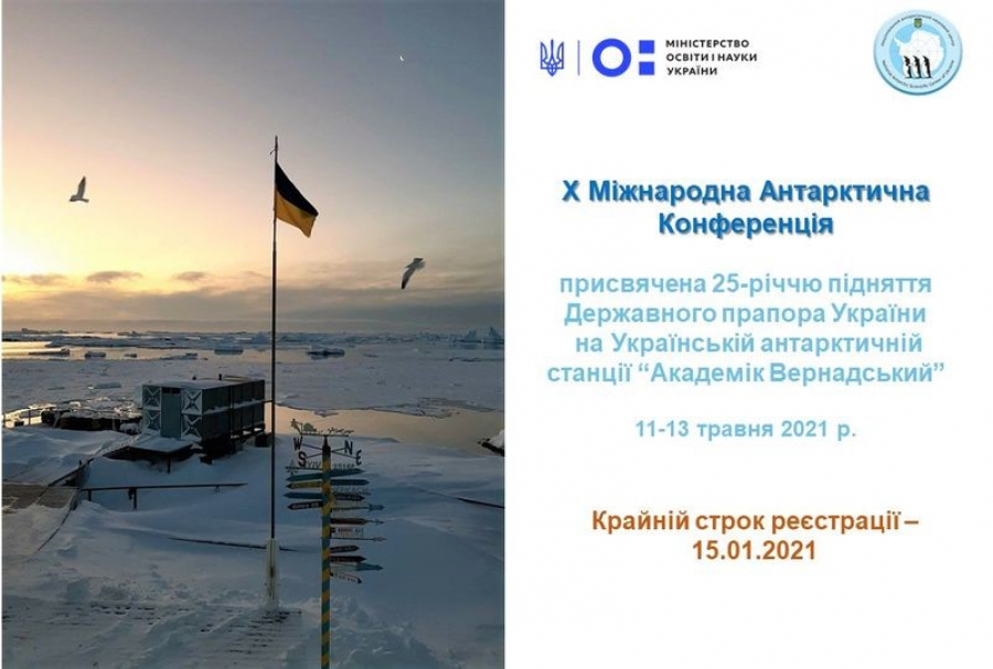 Запрошуємо Вас до участі в Х Міжнародній Антарктичній Конференції, присвяченій 25-річчю підняття Державного прапора України на Українській антарктичній станції “Академік Вернадський”, яка проходитиме з 11 до 13 травня 2021 року у м. Києві в режимі відеоконференції.
