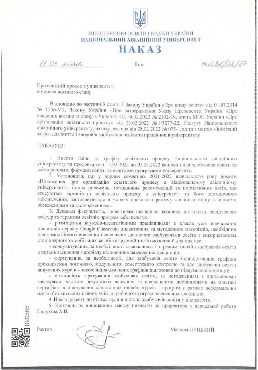 Про освітній процес в університеті в умовах воєнного стану