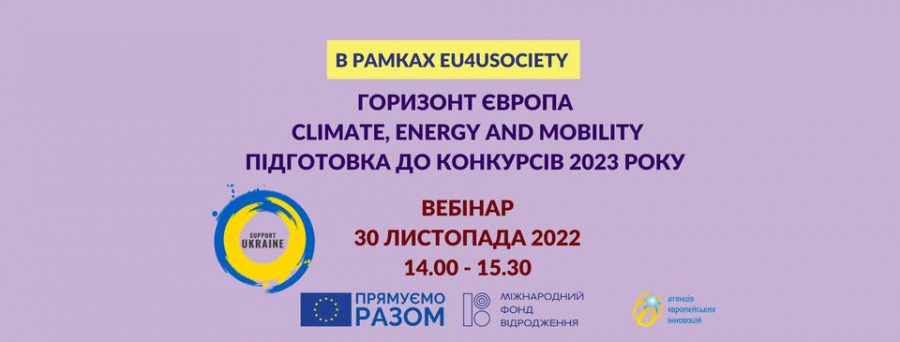 Запрошуємо Вас до участі у вебінарі “Підготовка до конкурсів 2023 програми Горизонт Європа за пріоритетами кластеру Climate, energy and mobility”, 30 листопада 14.00-15.30 онлайн у форматі ZOOM конференції.