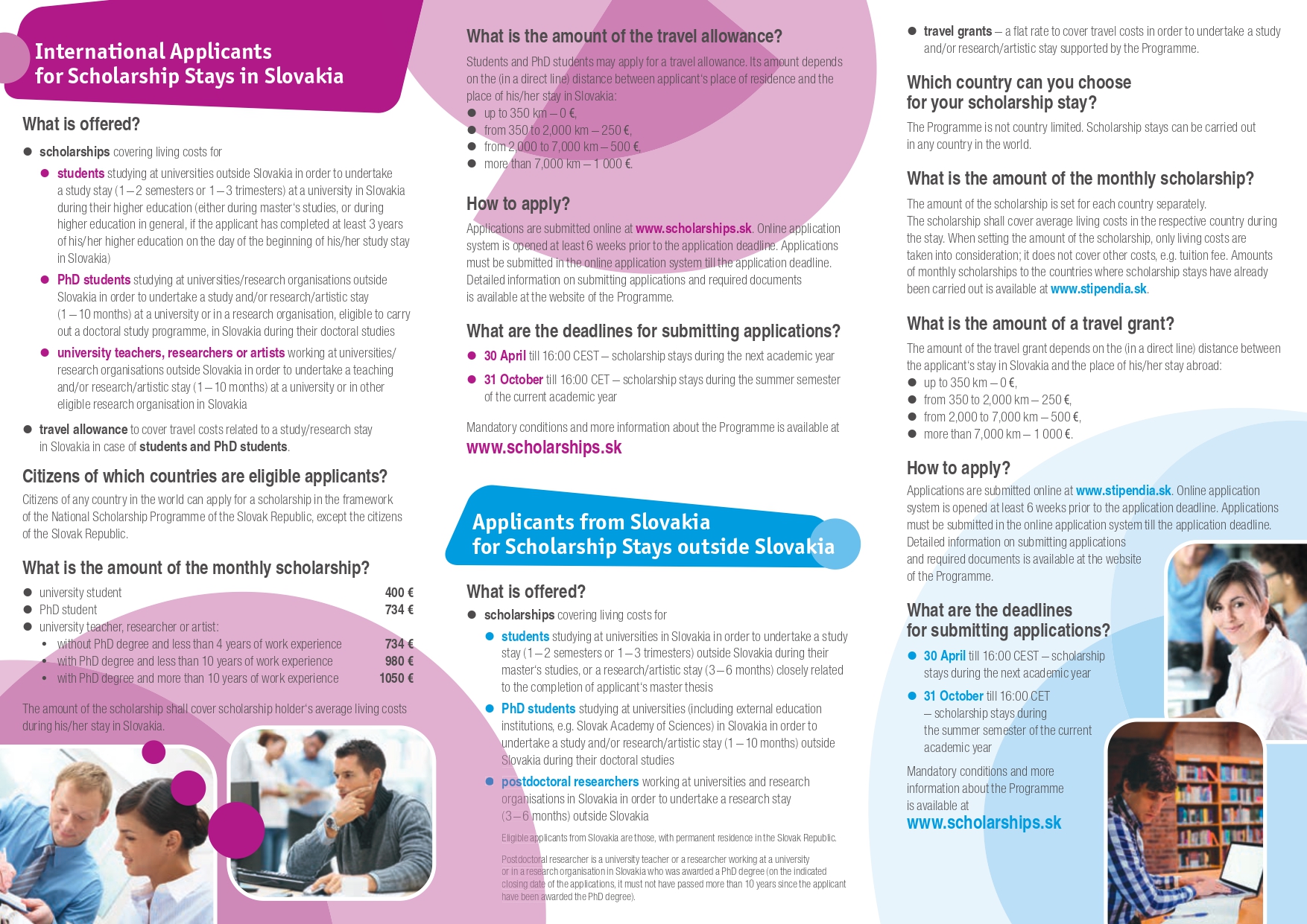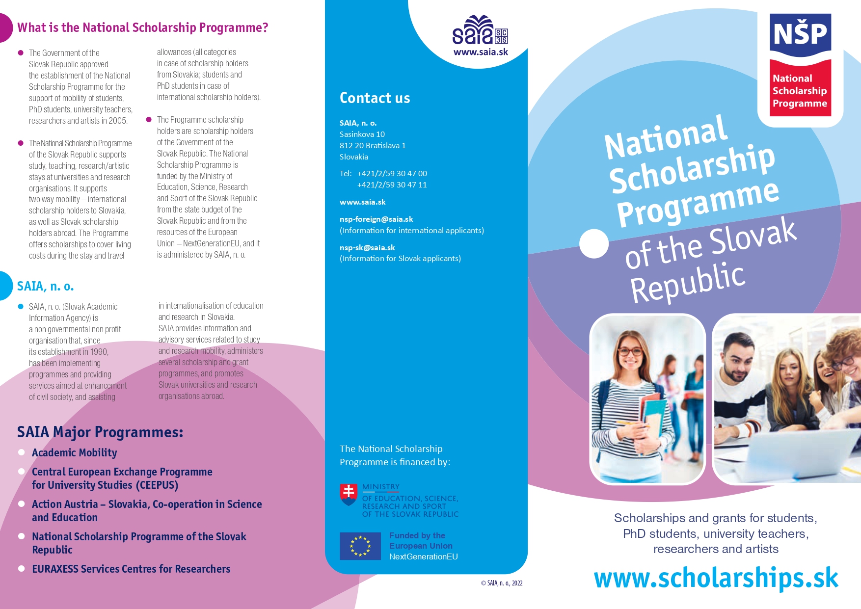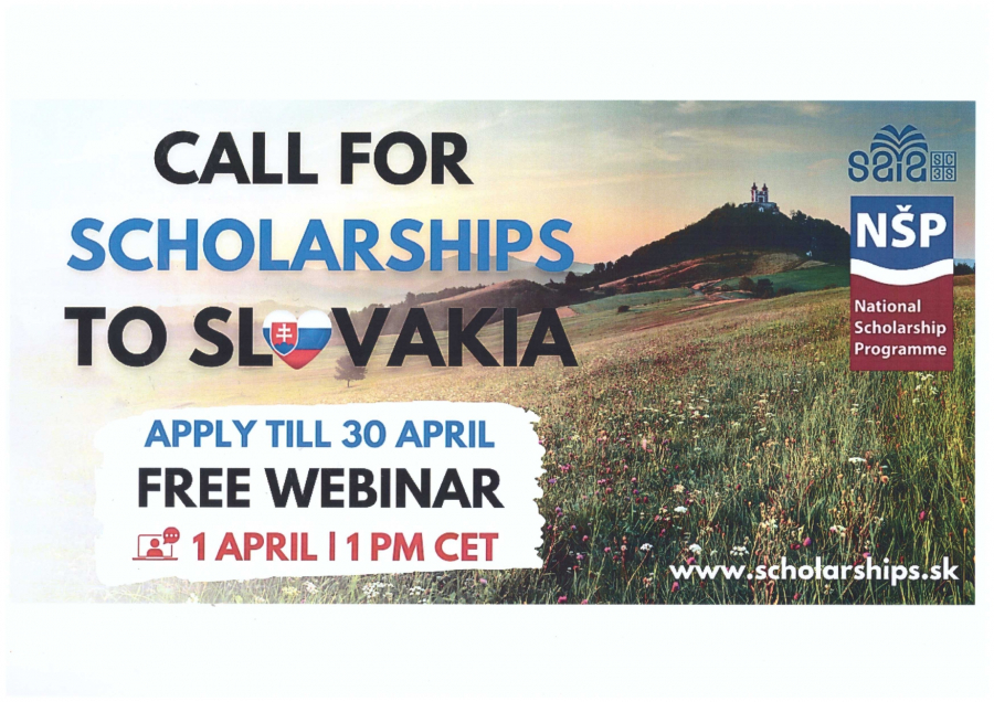 За інформацією Посольства Словацької Республіки в Україні, отриманою листом від 23.03.2023 №VN15045/2023 Урядом Словаччини відповідно до Національної стипендіальної програми (NŠP) Словацької Республіки оголошено про можливість отримати державні стипендії для громадян України на навчання, дослідницьке, мистецьке та лекційне стажування у 2023/2024 навчальному році (детальна інформація додається).