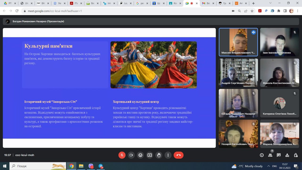 4 грудня 2023 року в групі БІ-308б в рамках години корпоративної культури відбулась віртуальна подорож Запорізькою Січчю та на о. Хортиця.