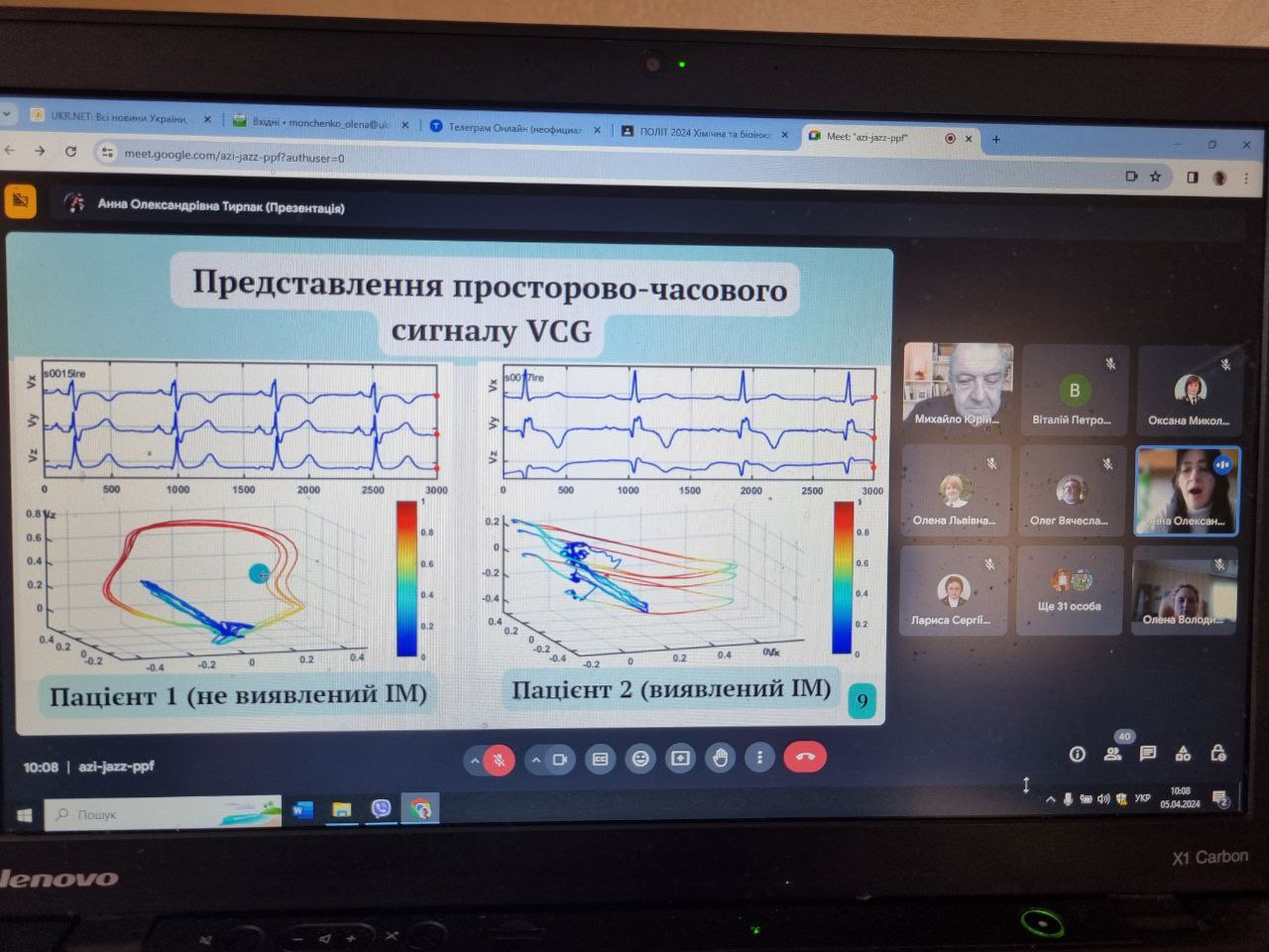 НА ОСНОВІ ВЕКТОРКАРДІОГРАМИ (наук.кер. проф. Буриченко М..), Заведеї Марії РЕАБІЛІТАЦІЯ ПАЦІЄНТІВ З РУХОВИМИ ПОРУШЕННЯМИ ЗА ДОПОМОГОЮ ВІРТУАЛЬНОЇ РЕАЛЬНОСТІ (наук.кер. доц. Д.Барановський), Климову Іллі АНАЛІЗ ПОБІЧНИХ ЕФЕКТІВ ТА ОБМЕЖЕНЬ ЛАЗЕРНОЇ ТЕРАПІЇ У БІОМЕДИЧНІЙ СФЕРІ (наук.кер. доц. О.Монченко) та Кодію Єгору РОЗРАХУНОК ВІЗУАЛЬНО ПОСИЛЕНОГО ВЕСТИБУЛО-ОЧНОГО РЕФЛЕКСУ ЗА ДОПОМОГОЮ ПЕРЕТВОРЕННЯ ФУР’Є (наук.кер. доц. О.Монченко) за цікаві сучасні перспективні доповіді і бажаємо подальших творчих успіхів!