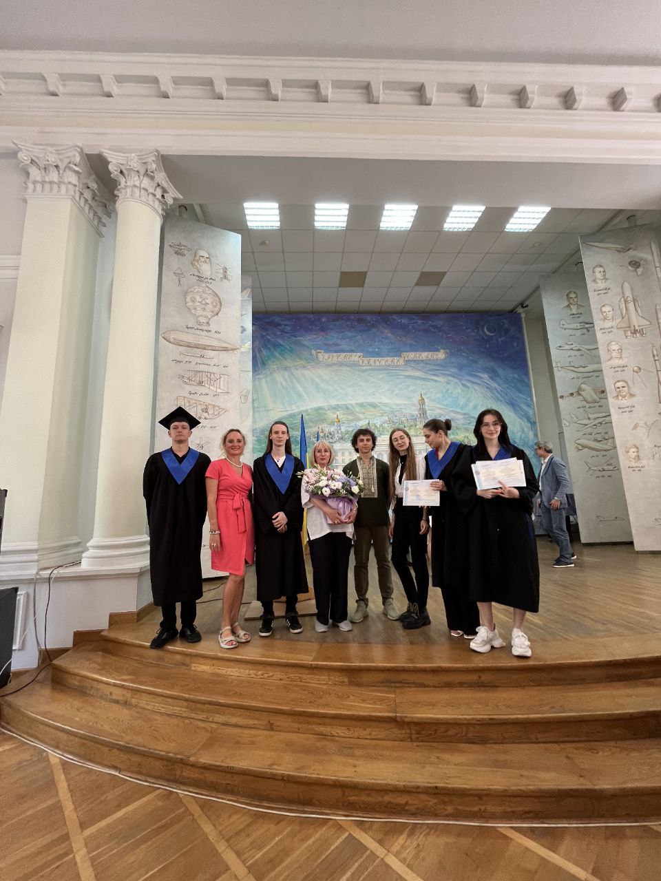І радісно, і сумно на врученні дипломів. 4 липня 2024 відбулось вручення дипломів бакалавра студентам кафедри біокібернетики та аерокосмічної медицини. Особливістю цього випуску було те, що попередній раз ми бачили їх офлайн 1 вересня 2020 року. Такий у них шлях і він їх, цей шлях! Нас вразила їхня активність, розум, наполегливість, і , як результат - шикарні дипломні роботи, просто блискучі захисти, що відмітив навіть наш поважний голова Гіндікін Анатолій Ісакович. А ще ці студенти мали практики вживу, і їх усіх порозбирали на роботи як гарячі пиріжки в базарний день. І ось прошуміло свято. Бажаємо Вам, любі наші, щасливої долі під мирним Українським небом, успіхів, кохання, везіння, ну і найнаполегливіших чекаємо в магістратурі! Дякуємо вам, що були з нами цих 4 роки.