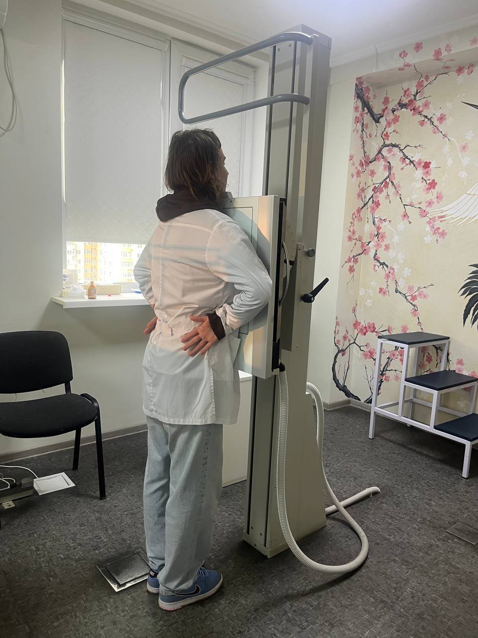 Під час практики спостерігали за гастроскопією та колоноскопією, вивчали будову та підключення ендоскопічного обладнання. У відділі УЗД бачили дослідження черевної порожнини, розбирали типові артефакти та технічні особливості апарата. В рентгенологічному відділі ознайомилися з роботою рентген-апарата, мамографа та денситометра.