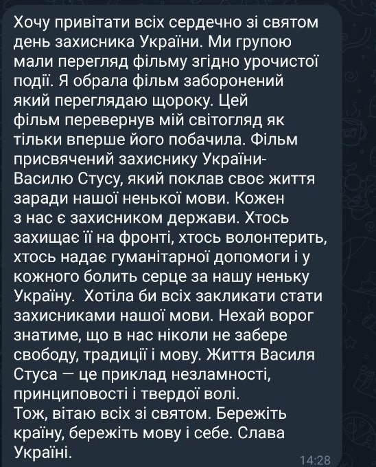 Зараз складний час, але пропоную відволіктись і переглянути один (чи декілька) із запропонованих художніх та документальних фільмів у можливий для вас час. Ми із здобувачами вищої освіти третього курсу так і зробили у рамках корпоративної години- подивились фільми та задонатили у благодійні фонди.