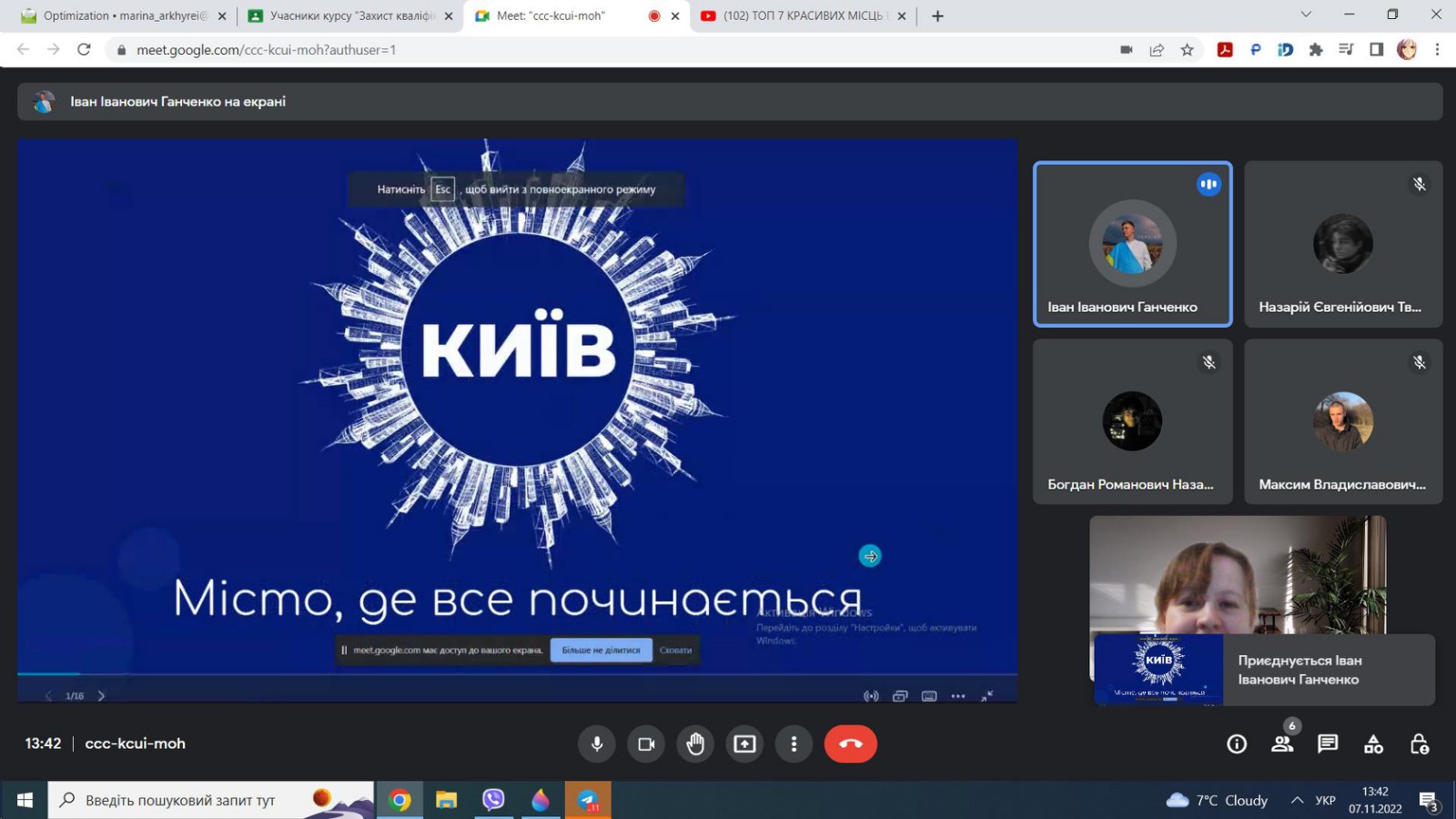 Війна диктує нові умови. Тепер треба встигати між повітряними тривогами і віяловими відключеннями світла. Група БІ-208б і куратор Архирей М.В. таки встигли провести годину корпоративної культури на тему "Віртуальна подорож Україною". Кожен учасник поділився найкращим на його думку місцем в Україні. Лідером подорожі виявилось місто Київ. Величне, нескорене і таке неповторне європейське місто, де в кожному куточку і закутку можна знайти щось цікаве. Дякуємо всім доповідачам і учасникам!!!