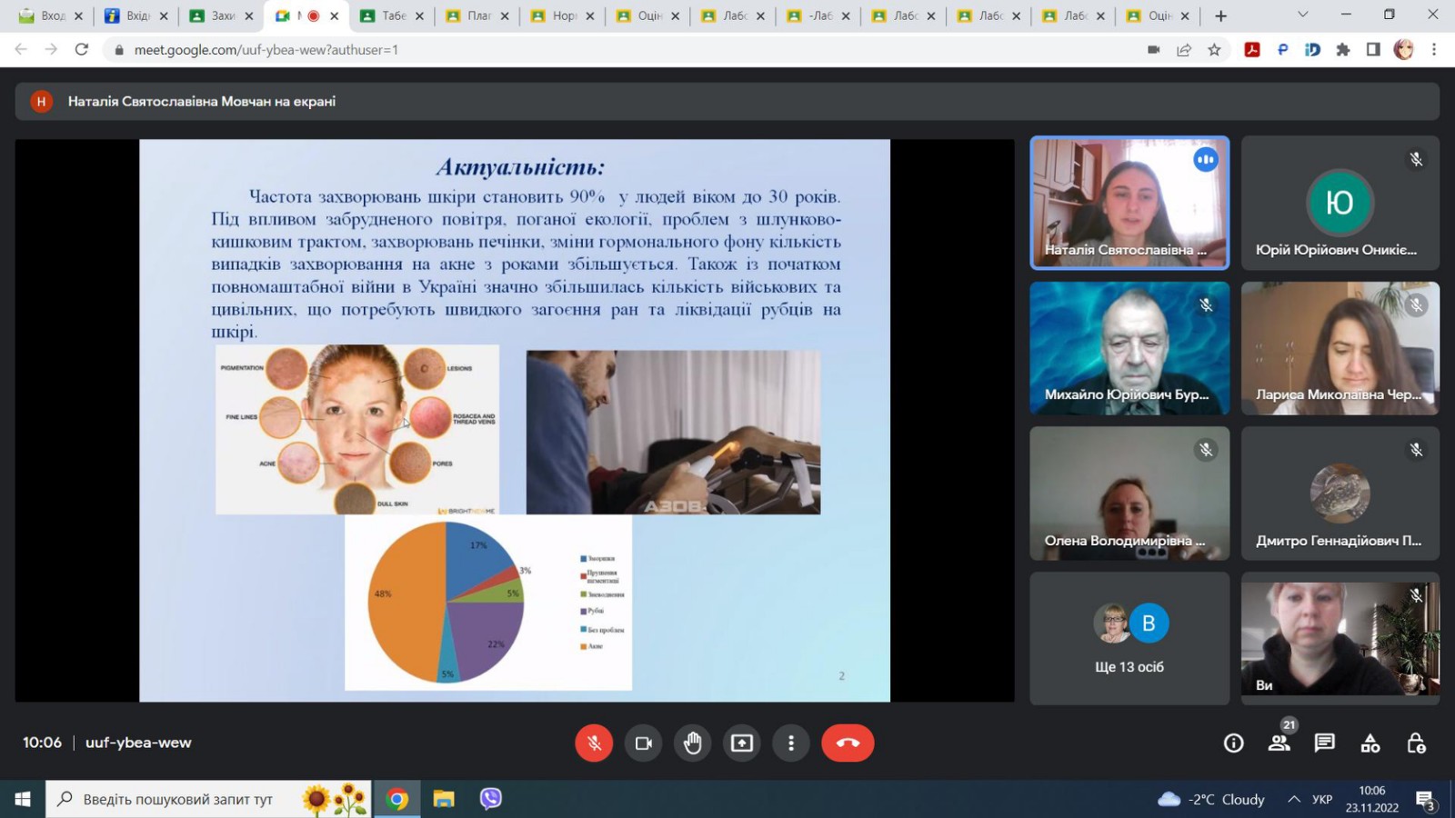 23 листопада 2022 року на кафедрі Біокібернетики та аерокосмічної медицини відбувся захист магістерських кваліфікаційних робіт. Було заслухано 9 робіт. Всі роботи викликали жваве обговорення та багато питань, а значить були цікаві.